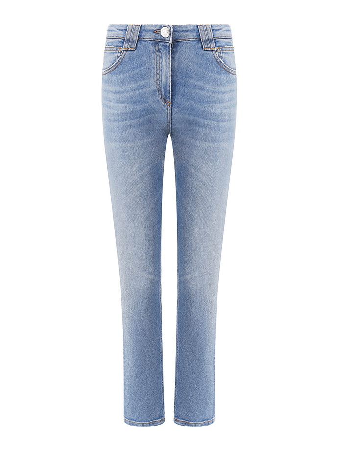 Джинсы с завышенной талией из коллекции экологичной моды. Светлый цвет, 5 карманов и длина по щиколотку. Скрытая ширинка на молнии с застежкой на пуговицу и плотная посадка. Высокая талия притягивает взгляды и подчеркивает силуэт.