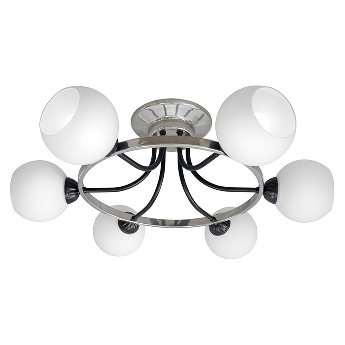Потолочная люстра идеально подходит для небольших комнат и низких потолков. Витиеватая форма и цвет хрома станет яркой деталью, которая впишется в любой интерьер.